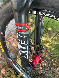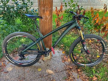 Vendo per inutilizzo taglia L bici in alluminio ultraleggero mai fatto fuori strada,sella telescopica,ammortizzatore Fox,freni a disco,cambio sram,cerchi Novatec pneumatici Maxiss,per ulteriori foto e dettagli contattatemi in privato massima disponibilità per visionarla di persona la bici è in ottime condizioni prezzo trattabile.