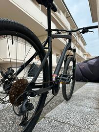 Vendo mtb alluminio con ruote da 27,5 telaio L forcella rst con blocco freni a disco meccanici monocorona con 9 marce posteriori ,Perfettamente funzionante.