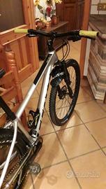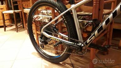 vendo o scambio con bici da strada con freni a disco mtb scott scale, taglia s, gruppo sram, forcella blocco al manubrio, ruote con camera d'aria ma pronte per tubelles, ottimo stato, possibile sostituire l attacco manubrio con uno più corto con manubrio in carbonio , sella nuova e pedali bici completa pronta per pedalare