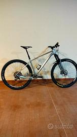 Bici tutto fare molto performante sia in salita che in discesa...telaio alluminio taglia L montata con sram XO 11 velocità pedivelle in carbonio freni Shimano Saint 4 pistoni forcella RockShox Pike ultimate 140 mm top di gamma ruote 29 tubeless custom con mozzi Hope e cerchi No Tubes Arch raggi sapim due reggisella uno azionamento manuale e un idraulico Reverb Stealth 150mm doppio manubrio uno in carbonio Fatbar Renthal e uno in alluminio kore pedali shimano xt trail gomme maxxis