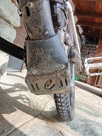 MTB elettrica bi-ammortizzata,150 mm. escursione ant e post, forcella Rock Shock diametro 36 mm., freni Formula Cura 4, motore After market 660 Wh con protezione paracolpi in alluminio. La bici è mancante di: catena, pacco pignoni e cambio posteriore.