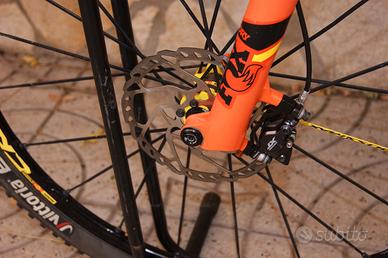 La bici è in buone condizioni generali, con normali segni di usura. È stata mantenuta con cura ma è in disuso da tempo; necessita di una revisione al cambio e al gel tubeless delle gomme.