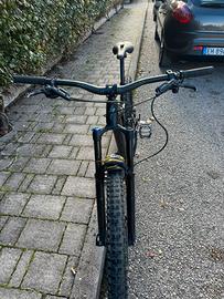 Vendo MTB Specialized Stumpjumper 29 taglia M in ottimo stato d’uso. Gli pneumatici non sono quelli in foto il posteriore è consumato. Per il resto la bici è perfettamente efficiente la forca è stata revisionata l’anno scorso l’ammortizzatore è stato revisionato proprio in questi giorni. La forca anteriore è una rock shock Revolution escursione 150 mentre l’ammortizzatore posteriore è sempre un rock shock Monarch RT AUTOSAG reband and 2 position