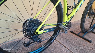 MTB in carbonio Scott Scale 940 Telaio: Carbonio HMF Forcella: RochShox judy Silver solo Air 100 mm traversa Gruppo: SRAM NX A 12 VELOCITÀ con Guarnitura Dub 32t Freni: shimano Mt 200 Attacco manubrio: Syncros Ruote: Sandro X 25 copertoni: nuovi Peso 12 kg Bici tenuta ottime condizioni pari al nuovo.