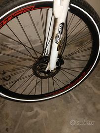 Vendo MTB dell' Adriatica (made in Italy) taglia M/L adatta dai 170cm in su. cambio Shimano 21 rapporti, sospensione idraulica e freni a disco. Compreso di doppia coppia di pneumatici sia slick che da sterrato, pompa, kit riparazione, borsetta,e camera d'aria di scorta. Vendo per inutilizzo usata pochissimo prezzo leggermente trattabile.