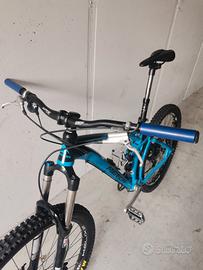 Vendo mtb all mountain merida one forty 7500 taglia m. La bici ha avuto molte modifiche ed è stata completamente revisionata da me (pastiglie nuove, spurgo ai freni, revisione alla forcella e ammortizzatore e infine cambio cuscinetti sterzo, carro e ruota posteriore). La bici presenta i seguenti componenti: