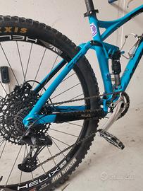 -ruote helix sun ringle 27.5 con uno spessore del cerchio di 28mm, monta un copertone maxxis minion dhf al posteriore e un maxxis high roller 2 all anteriore, entrambe le ruote sono latticizzate con tubless.