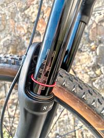 Rockrider AM100 HT taglia L in ottime condizioni - manubrio Switch scrub carbon da 31.8 mm - attacco manubrio alluminio Switch toboga da 35 mm -manopole Switch kaleido con bloccaggio a vite -freni SRAM Guide RSC ( pompanti, or, pistoncini pinze e ogive tubi freno sostituiti luglio 2025) erano freni in mio possesso di un altra MTB -disco Galfer 203 ant pastiglie Galfer viola x e-bike con forse 50km, post disco 180 pastiglie standard praticamente nuove. -ruote Sun Ringle duroc 30 tubeless ready da 29" -Racing ray ant e Racing ralph post da 2,25 latticizzate a dicembre 2025 con valvole nuove -pedivelle SRAM Nx corona da 32 - deragliatore e pacco pignoni 11v SRAM GX 11/42 -catena Sram PCX1 -forcella RockShox Revelation 130o140mm (forse 50km) -reggisella telescopico Shitch SW125 con sblocco a manubrio - sella Selle Italia SLR con carro in titanio -pedali flat Enlee protezione gomma su pedivelle, carro zona catena e pellicola Squad rimovibile, cedo gomme di primo equipaggiamento, tubo sella fisso, come di vede in foto rovinato carro lato dx a durante trasporto in auto..