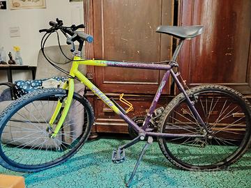 Vendo bici usata (comprata per essere sistemata ma mai messa su strada). È una mountain-bike da 26", le camere d'aria sono da sostituire e le regalo insieme alla bici. Diversi punti di ruggine sul telaio e vicino alla catena. Seduta comoda.