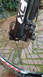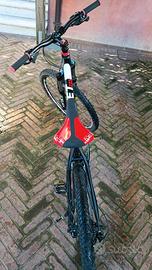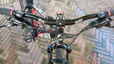 Telaio in alluminio taglia M. Dotata di gruppo cambio Shimano Deore 10x2, guarnitura Shimano Deore doppia, freni a disco idraulici Shimano e forcella ammortizzata con blocco idraulico. Colore Black/Red matt. In ottime condizioni, un vero affare anche per l'upgrade della sella Antares fizik con forchetta in titanio.