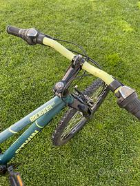 *MTB B-Twin 24" - Verde Petrolio* Vendo mountain bike B-Twin in buone condizioni generali con alcuni segni di usura e di ruggine, taglia 24. *Caratteristiche*: - *Marca*: B-Twin, Decathlon - *Ruote*: 24 pollici con copertoni tassellati, adatta a sterrato e città un po’ usurati - *Telaio*: Colore verde petrolio con scritte verde fluo - *Freni*: Disco anteriore + V-brake posteriore - *Cambio*: Shimano con comandi al manubrio - *Forcella*: Ammortizzata anteriore - *Sella*: Regolabile in altezza Bici solida e maneggevole. Presenta normali segni d’uso ma è meccanicamente funzionante. Ideale per iniziare, per la scuola o giri nel tempo libero. Prezzo: € 50 Zona: Gonnosfanadiga Ritiro a mano, no spedizione
