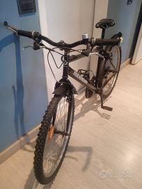 Vendo MTB della b-twin, modello Rockrider 5.0 , misura ruota 26 pollici, telaio misura M. Completamente revisionata. Cambio Shimano a 21 velocità, portaborraccia alluminio, prolunghe manubrio, parafanghi, catarifrangenti ruote, campanello. Sella Bassano Virtual, copertoni e catena nuovi . Perfetta e pronta all'uso. Zona Ostia lido. Ritiro a mano sul posto. Tel 347-3207224. Non ho whatsapp. Grazie