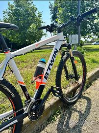 Bianca, Forcella ROCK SHOX XC30 ad aria: più leggera, più morbida, più precisa. Cambio 30 velocità SHIMANO SLX. Ruote AERO 27,5″ leggere. Forcella bloccabile al manubrio. Freni potenti AVID DB1. Copertoni MICHELIN leggeri con aderenza performante.