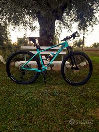mountain bike bianchi nitron 9.4 full carbon taglia L . ruote da 29 tubless Kenda. cerchi Velomann. cambio shimano deore xt 12 velocità. leva blocco forcella anteriore. freni rush. forcella Rockshox. contachilometri. doppio portaborracce. pedali shimano. sella memory. bici nuovissima usata solo per ciclabile e campagna privata. percorsi circa 1200 km. acquistata a Marzo 2025 da concessionaria ufficiale Bianchi. super affare per appassionati di bici muscolare.