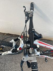 Vendo per inutilizzo bici in carbonio della “Bianchi” modello Pulse taglia 26, bici in ottime condizioni. Cambio 9 velocità shimano 3 corone anteriori, forcella con precarico a gas e blocco manuale. Freni idraulici Deore LX a disco. Gomme ancora buone