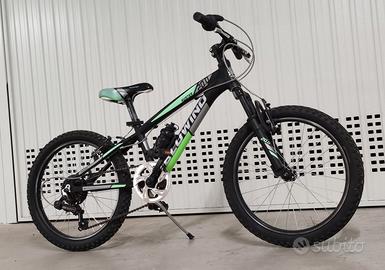 MTB bimbo con telaio in lega di alluminio, leggero e resistente. Forcella ammortizzata, ruota 20 pollici. Cambio Shimano 6 velocità. Colore nero e verde fluo. Adatta da circa 5 anni a circa 8 anni. Perfette condizioni. Non spedisco, consegna a mano.