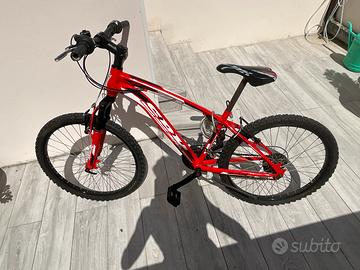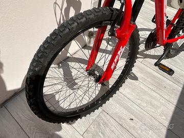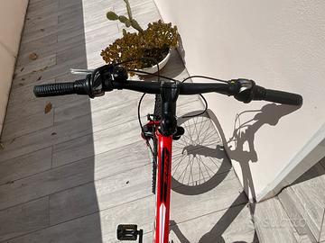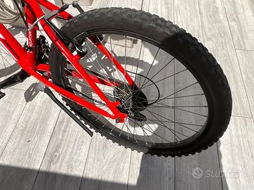 Buone condizioni,usata poche volte ma presenta piccole imprefezioni. Telaio: 24 Acciaio Forcella: Ammortizzata Cambio: Shimano TY21 (18V) Comandi: Shimano Revo Shifter Ruota Libera: Shimano V6 Deragliatore: Shimano Freni: V-Brake Alluminio Cerchi: Alluminio Neri Piega: Acciaio Piantone: Acciaio Serie Sterzo: Integrata Sella: Montegrappa