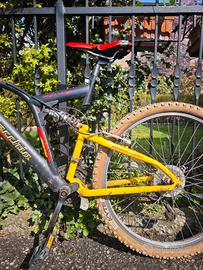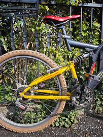 vendo mountain bike marca Bottecchia in acciaio, bi-ammortizzata e con cerchi da 26". La bici presenta segni dovuti al normale utilizzo, irrilevanti per il funzionamento. NB: la trasmissione sarebbe da rifare: la bici funziona ma la corona è leggermente inclinata. Allo stesso modo anche la sella ha delle parti lese. per questo lo stato è "danneggiato", ma queste sono parti facilmente sostituibili e usurabili. vista l'entità dell'articolo non spedisco, scambio a mano zona Coviolo, Reggio Emilia Sud.