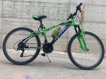 MTB per ragazzo in condizioni più che buone (qualche segno d'uso visibile nelle foto). Telaio in Acciaio, Cambio Shimano 18 Velocità, Peso 15-17 kg, Gomme 24×1.90″, Freni Alluminio V-brake. No spedizione. Punto di ritiro da concordare, Massima Serietà.