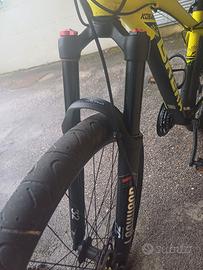 copertoni maxxis hookworm seminuovi, forcella ad aria nuova da 120 mm di escursione e tubo da 32