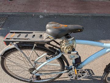 Mountain Bike con doppia ammortizzazione in buone condizioni. Freni controllati, cambio da registrare. Telaio in alluminio. Affidabile e duratura, ottima anche su tracciati medio lunghi. Cambio 3+7 marce.