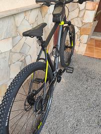 MTB Bulls bushtail 29" ,telaio in alluminio, forcella ammortizzata Suntour XCM con comando idraulico. Blocco, deragliatore posteriore Shimano Alivio a 27 velocità, leve del cambio e deragliatore anteriore Shimano Altus, movimento centrale MT-101, mozzi Formula, freni a disco Tektro HD-M275 da 180 mm, cerchi a disco STYX DDM-2, pneumatici Supero Edge, manubrio, attacco manubrio e STYX. Accessori extra aggiuntivi porta borraccia, marsupio con scomparto smartphone ,luce anteriore a led multifunzione e luce posteriore . MTB usato solo 3 volte praticamente nuova.