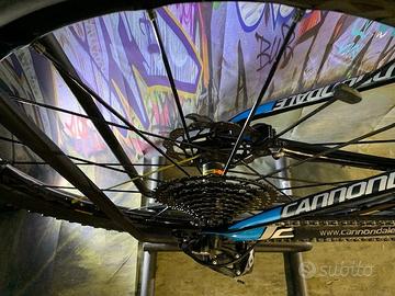 la bici e ferma da 3 anni e tenuta bene con montaggio custom di pregio viene venduta con garanzia e tagliando alla forcella incluso cannondale f-si carbon 2 telaio himod il + performante forcella lefty 2.0 con pop lock al manubrio comando rock shox idraulico cambio sram xo 11 velocita e in perfetto stato guarnitura cannondale si 36-22 manettini sram xo pacco pignoni ethertin 9-44 11 v ruote con cerchi mavic crossmax xd freni magura mt6 , manubrio cannondale in cabonio reggisella ks integra lev 27,2 con comando al manubrio la bici pesa 9,4 kg