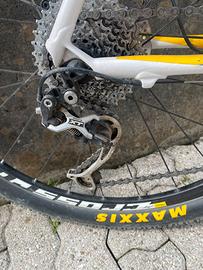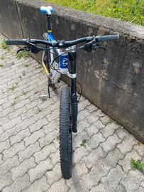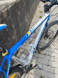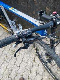 Vendo, per inutilizzo e passaggio a EMTB, MTB cannondale 27,5” taglia L del 2013 forcella Lefty con blocco al manubrio. Impianto frenante Deore installato nel 2022. Cambio shimano Deore.Telaio in carbonio. Da cambiare copertone posteriore per usura e regolare il cambio. Solo consegna a mano, qualsiasi prova disponibile.