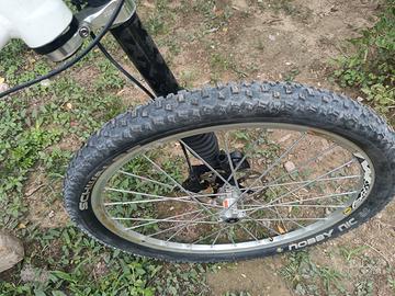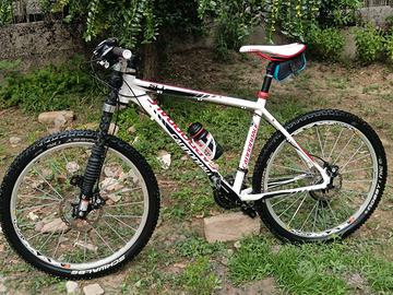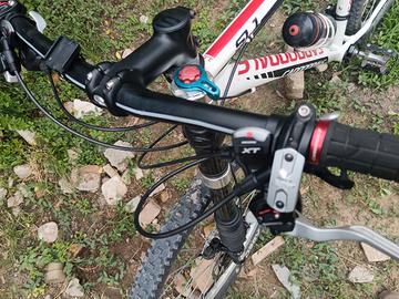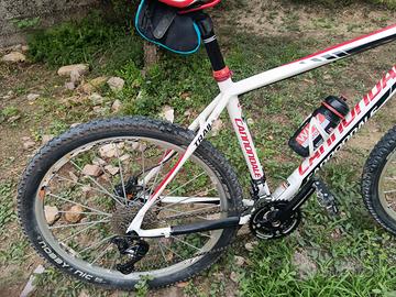 Bellissima Cannondale SL1 Trail 26,telaio misura L,tutta montata Shimano XT 30 velocità,forcella Lefty Carbon,ruote Mavic CrossMax Tubless gommate 95,%,. La bici è stata usata pochissimo,tutto è originale e pari al nuovo, né strisci né abrasioni . Si possono montare ruote da 27.5 o trasformare in Gravel e può essere trasformata in elettrica. Euro 430 tratt.