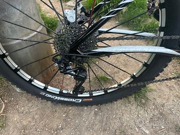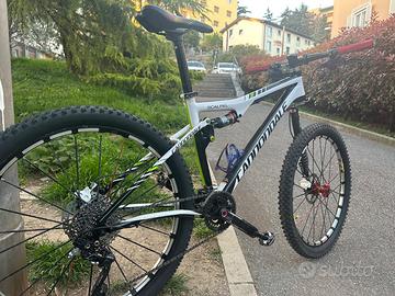 Mtb cannondale scalpel 26 Carbonio alto modulo HM buonissime condizioni, totalmente tagliandata lo scorso anno e riposta in box in quanto taglia ormai piccola per mio figlio (attualmente è alto 1.85 ed in crescita), ultimi lavori effettuati prima della messa in vendita: sostituzione copertoni e cavi più varie regolazioni, erano stati effettuati circa due anni fa anche la revisione dell’ammortizzatore posteriore e della forcella lefty in carbonio. Mtb top gamma del 2012, con forcella lefty Carbon, deragliatore posteriore Shimano xt 10v, deragliatore anteriore Xt, gruppo 2x10, freni Magura perfettamente funzionanti, guarnitura cannondale, manubrio ritchey e attacco cannondale OPI, reggisella originale cannondale C2, sella Selle Italia, mtb handmade in USA, ruote mavic top gamma e gomme continental 26x2.30 nuove tubeless, credo che il modello non ha bisogno di presentazioni, la mtb non è mai stata usata per fare enduro ma solo per fare strada e qualche sterrato come si può vedere dalle condizioni del telaio. Movimento BB30. Qualsiasi prova dal vostro meccanico di fiducia. Assolutamente originale, taglia M come da tabella cannondale adatta per altezze da 170 a 178. Il prezzo è poco trattabile e non rispondo a proposte inutili.