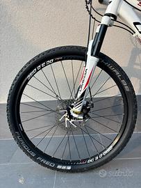 MTB in ottimo stato. Taglia S. Smessa di usare perche passata alla gravel. Cambio Shimano Deore. Pedali doppi, da un lato flat e dall’altro gancio mtb. Copertoni con battistrada in buono stato. Ruote 26 pollici. Prezzo trattabile