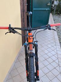 Cannondale Trigger 3 taglia L Ruote 27,5 telaio in carbonio e carro in alluminio Escursione da 150 e 145 chiudevoli entrambi, Freni xt, mono corona da 28 denti anteriore, manubrio in carbonio da 800mm. Sella telescopico.