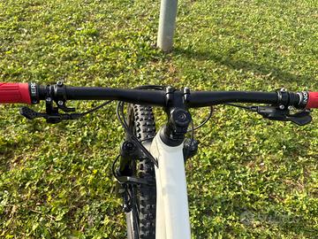 Mtb Canyon neuron young hero, taglia 2XS, ruote 27.5, adatta per ragazzi e persone da 135 a 157 cm. Escursione ant e post 130mm, cambio deore a 12 velocità. Bici con evidenti segni di utilizzo ma con una funzionalità eccellente. Comprata ad agosto 2023. Unica proprietaria. Come up grade ho montato il reggi sella telescopico, i freni formula cura, la sella boost e la borraccia con attacco fidlok (L unica che ci sta). La bici è molto veloce e agilissima. Capace di girare in enduro e anche in park ma ottima anche in salita grazie al peso contenuto e il rapporto 11-51 con corona da 30t. Consegno tutti i pezzi originali e regalo un deragliatore deore nuovo. Altre foto disponibili a richiesta.