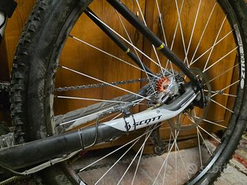 Vendo causa inutilizzo, mountain bike in carbonio con telaio Scott RC 29 HMX, top di gamma da sempre. Ruote ultraleggere, artigianali, in alluminio. Cambio SRAM X9, tubo manubrio da 100mm Ritchey WCS, piega in carbonio low rize Ritchey WCS, tubo sella in carbonio originale. La bici è dotata del kit Bafang con motore da 750W e batteria da 15Wh, presente con la sua borsa dedicata. Il kit è smontabile, se si vuole riportare la bicicletta alla sua forma muscolare. Preferibile consegna a mano, posso consegnare la bici in tutto il nord Italia.