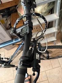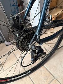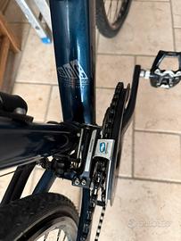 Marchio tedesco, usata pochissimo,(2mila km si e no), completamente controllata e sistemata qualche mese fa, nessun segno di usura, mai fatto sterrato, ha gomme da strada, non ho esperienza in materia x domande tecniche, allego foto del cambio, corona, freni, ho a disposizione anche i pedali originali di fabbrica e scarpe n. 43