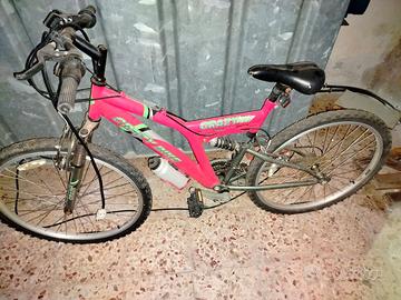 Vendo Mountain Bike Crazy Bike bicolore (fucsia/verde), perfetta per ragazzi. Modello full suspension con ammortizzatore centrale e forcella anteriore per il massimo comfort su ogni terreno. Usata solo 2 volte. PREZZO TRATTABILE