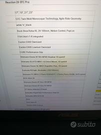MTB Cube Reaction 29 GTC Pro taglia S (17") Carbonio monoscocca Forcella Rock Shox Reba RL 29 100mm Shimano Deore XT RD M780 10 velocità Freni Formula idraulici dischi 180mm Tripla corona Shimano 42x32x24 Manubrio Easton oversized Preferibile consegna a mano