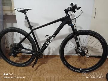 vendo x inutilizzo bici MTB marca CUBE, modello reaction race c62, telaio in carbonio da 29 ", Tg L, montata con gruppo schimano XT da 12 velocità, forcella FOX con comando remoto, freni XT, la bici pesa circa 10,5 kg. cedo insieme pedali e vari accessori.