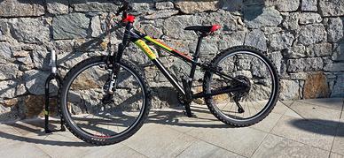 Vendo Mtb da bambino / ragazzo Cube Reaction SL misura 24 pollici. Adatta per ragazzi 7-12 anni, altezza cavallo 55-73cm. In ottime condizioni, presenta normali segni d'uso, meccanicamente è perfetta. Montata monocorona SLX 1x11. In origine nasce come bici da gara, leggerissima e con forcella rigida. Ora monta una forcella RST First Air 24 60 lockout, aria e olio, che funziona perfettamente. In dotazione anche forcella originale visibile in foto. N.B. La bici nuova costava 800 euro, la forcella Rst 300 euro, verificate online, prezzo trattabile ma niente offerte assurde grazie, la bici è perfetta. Solo ritiro a Sondrio. Mtb Cube 24 bambino