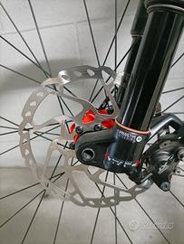 Forcella ROCK SHOX con steli rovesciati, regolabile con comandi al manubrio.