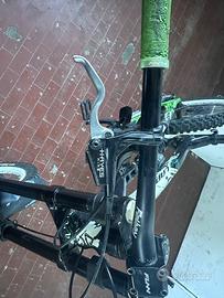 Vendo bici da downhill Lapierre Froggy 318 con cerchi da 26”. L’ho acquistata da un ragazzo che la utilizzava in piano (no bikepark) e nei due anni successivi l’ho utilizzata in park per un totale di circa otto uscite. Ho sostituito l’impianto frenante con un modello usato migliore dell’originale, ho sostituito le pedane e svolto ogni lavoro e manutenzione presso ciclo-officina specializzata. La bici necessita di una pulita, della sostituzione delle manopole e del sellino. Monta forcelle Marzocchi e mono ammortizzatore Fox VanR. PREZZO TRATTABILE