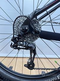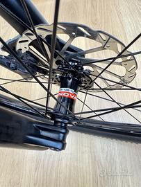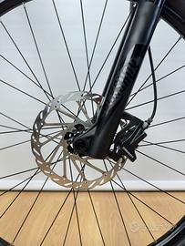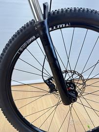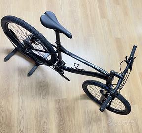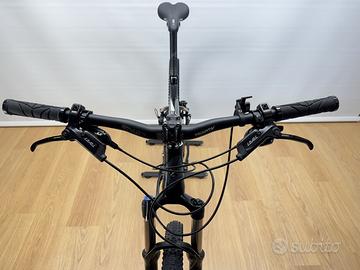Mountain Bike Devron Zerga D5.7 del 2020 circa, telaio in alluminio 6061 con forcella RockShox Recon da 100mm con bloccaggio al manubrio, ruote in alluminio da 27,5″, trasmissione Sram Gx 2×10 velocità e freni a disco idraulici Sram. Bici utilizzata sempre in modo amatoriale prevalentemente nel weekend, ed adesso sostituita per passaggio a bici elettrica, tenuta in ottimo stato e tutto è perfettamente funzionante e in buono stato di usura. La bici ideale per chi cerca una prima mountain bike, taglia L adatta per altezze da 176 a 184 cm circa.