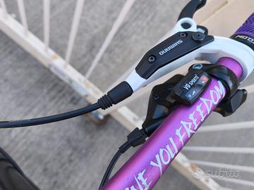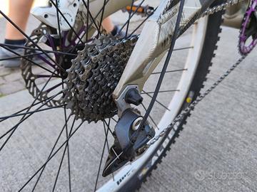 Vendo MTB /enduro / downhill ruote da 27.5"ant/26”post, taglia M - biammortizzata. allestita con componentistica di qualità e numerose personalizzazioni estetiche e funzionali. La bici è pronta per essere utilizzata in bike park o su percorsi gravity. Caratteristiche principali - Telaio allu con verniciature e decorazioni personalizzate - Sospensioni regolabili con componenti premium - Freni idraulici Shimano - Ruote da 27.5"ant + 26”post con copertoni tassellati specifici DH - Componentistica aggiornata e dettagli anodizzati - Manutenzione completa appena eseguita Condizioni Bici in ottime condizioni generali, perfetta per ragazzi già ottimizzato per il downhill. Prezzo leggermente trattabile, dopo visione e prova.