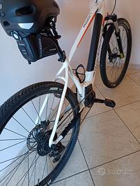 E' dotata di telaio in alluminio con cavi integrati e forcella SUNTOUR XCM HLO 100mm travel con blocco alla forcella