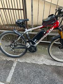 Vendo mtb elettrica taglia S con telaio in alluminio e forcellone posteriore in carbonio,cambio shimano XT,batteria da 720 watt ruote da 26’,pochissimi km Prezzo 350€