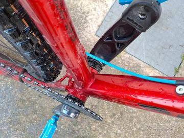 Fantastica MTB con geometrie da Enduro ( 65° inclinazione forcella) Custom da 29" taglia XL, eccezionale nelle discese su sterrato, ben pedalabile nelle salite più difficili, MTB della categoria "hardcore hardtail" molto divertente, veloce e agile nella guida.