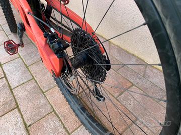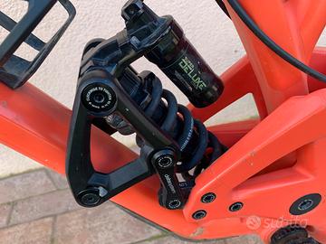 MTB Evil anno 2019 la Evil wreckoning è una bici perfetta per salite ripide e discese impervie data la sua grande escursione degli ammortizzatori e geometrie regolabili durante il vostro giro in bici. Con le sue ruote da 29’’ puo passare su tutte gli ostacoli del percorso senza problemi, grazie alla grande escurione di forca (170mm) e ammortizzatore (166mm) aggiungendo anche il telaio in fibra carbonio sarà come galleggiare su sassi,radici e tutte le impervie del percorso. queste sono le caratteristiche e le misure generali con i componenti della bici: -telaio in fibra di carbonio -forca fox 36 kashima (170mm) -ammortizzatore rock shox super deluxe(166mm) -freni sram code -dischi freni formula -pacco pignoni sram eagle 11-51 -manubrio e stem in carbonio con pellicola protettiva danneggiata -pedivella sram xx1 -cerchi in carbonio -gomme maxxis anteriore nuova posteriore danneggiata