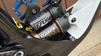 Telaio in carbonio, geometria moderna e sospensioni FOX per una guida fluida e stabile anche sui percorsi più tecnici.