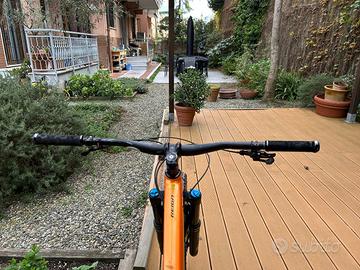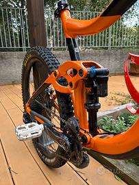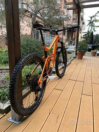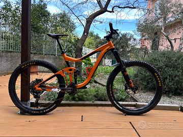 La bici è montata come da catalogo, ha pochi normali segni di usura e non ha problemi. La vendo a malincuore perchè sono stanco di vederla prendere polvere in garage. Colorazione Metallic Orange / Black TelaioALUXX SL-Grade Aluminum 160mm Maestro Suspension Forcella Fox 36 Float Performance, 170mm travel, GRIP2 Damper, LSC adjust, Boost 15x110mm QR, tapered steerer Ammortizzatore Fox Float DPX2 Performance, trunnion mount Manubrio Giant Contact, 800 x 35mm, 20mm rise AL 6061 Attacco manubrio Giant Contact SL Diametro 35 Reggisella Giant Contact Switch S dropper post with remote lever, 30.9mm Sella Contact SL (neutral) Leve del cambio SRAM GX Eagle, 1x12 Deragliatore Posteriore SRAM GX Eagle Freni SRAM Code R [F] 200mm [R] 180mm, hydraulic disc Comandi freno SRAM Code R Pacco pignoni SRAM XG-1275 Eagle, 10x50 Catena SRAM GX Guarnitura TruVativ Descendent 6k, Eagle Dub, Boost, 32 MRP AMG V2 Alloy Guide Movimento centrale SRAM GXP Dub Press Fit Cerchi Giant AM 27.5, tubeless ready, sleeve-joint rim, 30mm inner width Mozzi|[F] Giant Tracker Performance Boost 15x110mm, sealed bearing [R] Giant Tracker Performance Boost 12x148, sealed bearing, XD Driver Body Raggi Sapim Coperture [F] Maxxis Minion DHF 27.5x2.5 WT, 60 tpi, 3C, EXO, TR [R] Maxxis Minion DHRII 27.5x2.4 WT, 60 tpi, 3C, EXO, TR, tubeless nukeproof mega , trek slash, trek remedy, specialized enduro, specialized stumpjumper, cube stereo, giant reign , yt tues, lapierre spicy, devinci spartan, mondraker dune, mondraker foxy, santacruz megatower, santa cruz v10, kona process, yt capra, canyon sender, canyon torque, canyon spectral