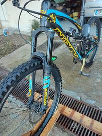 Bici versatile con impronta discesistica, Nessun difetto meccanico, solo normali segni di usura. Pronta per gare amatoriali vista la fornitura di accessori e la qualità complessiva di telaio e componenti.